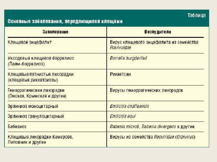 Систематика (класс, название паразита) Способ паразитирования: (экто/эндопаразит, временный /постоянный) Особенности жизненного цикла: схема развития, хозяева Вызываемое заболевание и его эпидемиологические характеристики/диагностика Класс Паукообра зные ( Arachnida) Сем. Акариформные (Acariformes) Чесоточный зудень Sarcoptes scabiei Постоянный Чесотка, Сем. Иксодовые (Ixodidae) Таежный клещ Ixodes persulcatus Европейский лесной клещ Ixodes ricinus имаго→яйцо→личинка→нимфа→имаго -однохозяинный -специфический паразит человека эндопаразит Антропоноз (внутрикожный) Микроскопия соскобов кожи -временный эктопаразит имаго→яйцо→личинка→нимфа→имаго -специфический -треххозяинный переносчик и -паразит человека и животных резервуар: -трансовариальная передача вируса возбудителя энцефалита боррелии (спирохеты ) Воспалительные процессы в месте укуса, вторичные инфекции Вирусный менингоэнцефалит природно-очаговое , трансмиссивное, инфекционное заболевание, (лихорадка, интоксикация, поражение Н. С. , развитию параличей), per os, per cutis Боррелиоз (Болезнь Лайма) природноочаговое , трансмиссивное, инфекционное, ( хроническое и рецидивирующее течение, с поражением кожи, Н. С. , опорнодвигательного аппарата и сердца) cutis.