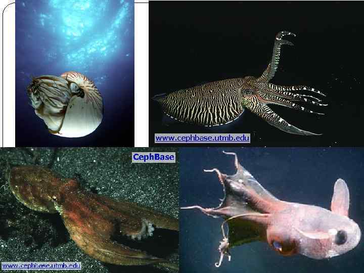 Особенности строения: Нога видоизменена в щупальца и воронку (орган реактивного движения) Раковина у большинства видов полностью или частично редуцирована (сохраняется в виде пластинок внутри тела) Исключение Наутилус и Аргонавт (самка) Многие головоногие способны менять окраску