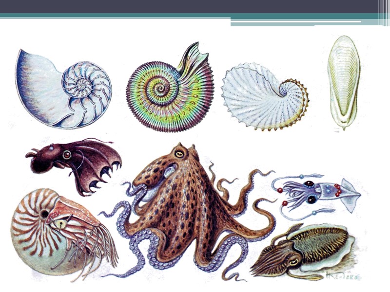 Число видов: 650 Образ жизни: свободноживущие Симметрия тела: двусторонняя Размер тела: от 1см – 18м Отделы тела: голова, туловище, нога Раковина: редуцирована, есть внутренний хрящевой скелет Функция ноги: активное движение по субстрату, захват жертвы, реактивное передвижение Пищеварительная система: в глотке роговые чешуи( клюв), секрет слюнной железы ядовит Способ питания: активный захват пищи ( хищные) Дыхание: жаберное Сердце: 1 желудочек, 4 предсердия есть венозные сердца Половая система: раздельнополые Органы чувств: равновесия, химического чувства, обоняния, зрения Развитие: прямое