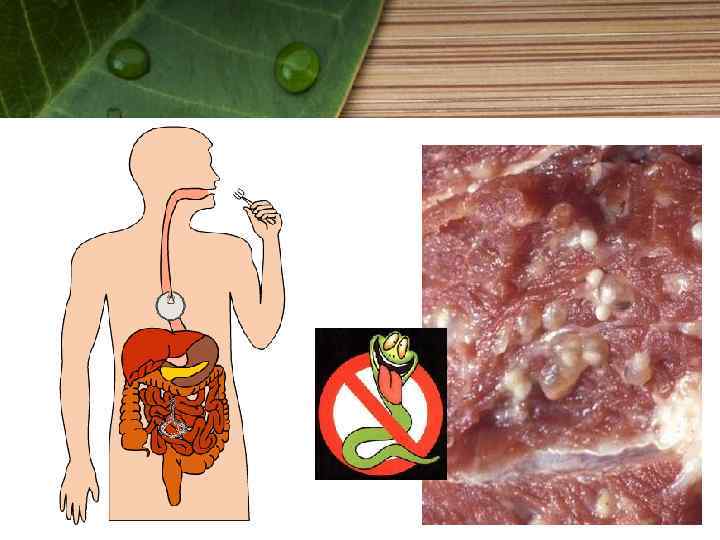 Методы защиты от заражения паразитическими червями Соблюдение правил личной гигиены. Мойте руки перед едой, после работы с землёй, ухода за животными, посещения туалета. Важное значение имеет очистка питьевой воды. Не пейте сырую воду, особенно из открытых водоемов. Правильное приготовление пищи. Не употребляйте в пищу плохо проваренные или прожаренные мясо и рыбу. Необходим строгий санитарный контроль на бойнях. Максимально тщательно мойте и по возможности обдавайте кипятком зелень, овощи и фрукты, подаваемые к столу в сыром виде.