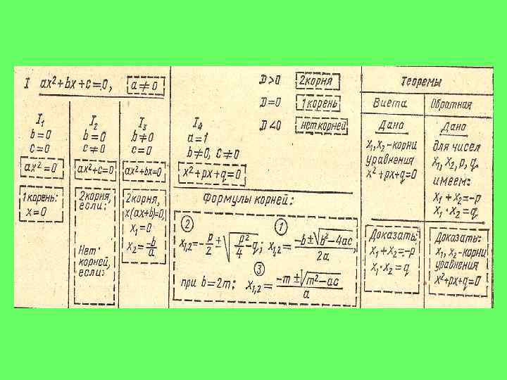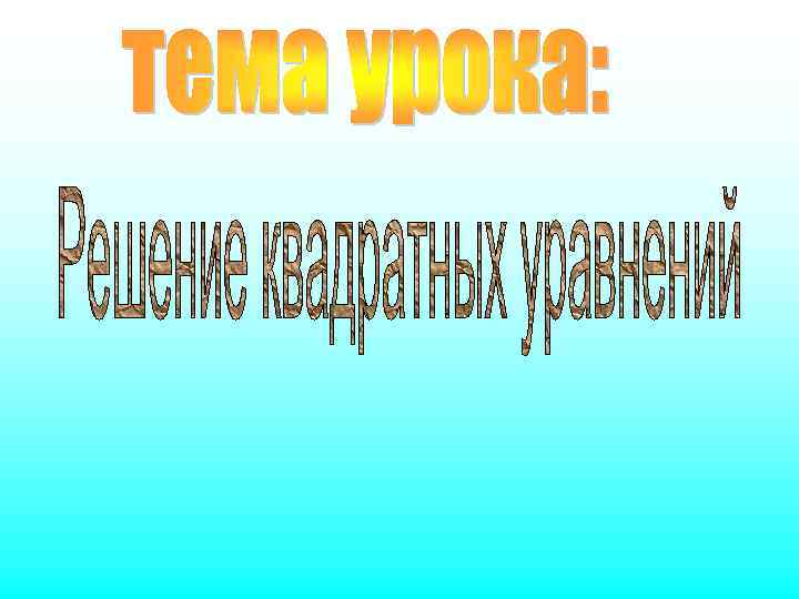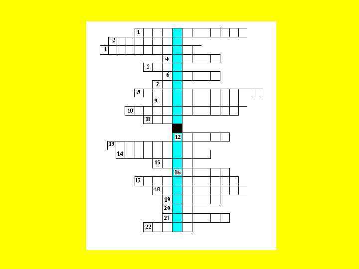 1. ( а ─ 3)х = а 2 ─ 9; 1978 x 2 -1984 x+6=0. 2. Учитель приводит пример стиха. « Когда уравнение решаешь дружок, Ты должен найти у него корешок. Значение буквы проверить несложно, Поставь в уравненье его осторожно. Коль верное равенство выйдет у вас, То корнем значенья зовите тотчас» . 3. Разгадайте кроссворд Вопросы: 1. Название выражения в 2 ─ 4 ас. 2. Квадратное уравнение, где в и с равны нулю. 3. Число вида z = а + вi 4. Название единицы, квадрат которой равен ─ 1. 5. Число корней квадратного уравнения при Д=0. 6. Число, делящееся на 2 нацело. 7. Существуют ли действительные корни в квадратном уравнении, если Д < 0? 8. Название части комплексного числа а + вi 9. Геометрическая фигура, все точки которой равноудалены от некоторой точки плоскости. 10. Число, которое можно представить в виде дроби. 11. Математик, доказавший, что х1 + х2 = ─ р, х1 х2 = q. 12. График функции у = кх + в. 13. Большая из сторон прямоугольного треугольника. 14. Уравнение вида ах2 + вх + с = 0, а ≠ 0. 15. Что можно найти, разделив пройденный путь на скорость? 16. Меньшая сторона прямоугольника. 17. Квадратное уравнение, в котором, а = 1. 18. Что можно найти, перемножив скорость и время? 19. Степень уравнения ах2 + вх + с = 0, а ≠ 0. 20. Число корней квадратного уравнения при Д > 0? 21. Математик, доказавший, что квадрат гипотенузы равен сумме квадратов катетов. 22. Не самая большая из сторон прямоугольного треугольника.