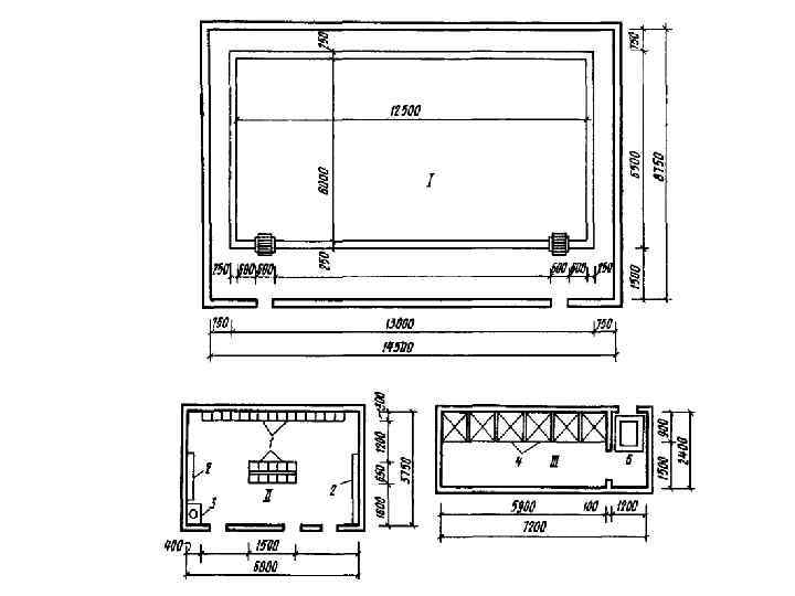 Спортивные залы (размещение на 1 этаже в пристройке). Площади спортивных залов приняты 9 х 18 м, 12 24 м, 18 30 м при высоте не менее 6 м. При спортивных залах должны быть предусмотрены: снарядные, площадью 16 - 32 м 2 в зависимости от площади спортзала; раздевальные для мальчиков и девочек, площадью 10, 5 м 2 каждая; душевые, площадью 9 м 2 каждая; уборные для девочек и мальчиков, площадью 8 м 2 каждая; комната для инструктора, площадью 9 м 2.