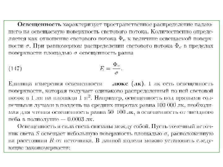 Типовая освещённость, примеры Освещённость, лк Где 10 -5 Свет Сириуса, ярчайшей звезды ночного неба[1] 0, 002 Безлунное звёздное небо 0, 01 Четверь Луны 0, 27 Полнолуние в ясном небе[1][2] 1 Полная Луна в тропиках[3] 50 Жилая комната[4] 80 Подъезд/туалет[5] 100 Очень пасмурный день[1] 320– 500 Рабочий кабинет[6][7][8] 400 Восход или закат в ясный день. 1000 Пасмурный день[1]; освещение в телестудии 10– 25 тыс. Ясный солнечный день (в тени)[1] 32– 130 тыс. Под прямым солнцем
