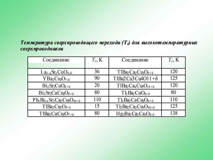 Типы функциональных материалов А. И. Романенко 1. Сверхпроводимость: нулевое электросопротивление, несовместимость свенрхпроводящего состояния и магнитного поля – эффект Мейснера, слабая сверхпроводимость – эффект Джозефсона. 2. Магнетизм: ферромагнетики, антиферромагнетики, парамагнетики, диамагнетики. 3. Сигнетоэлектрики. 4. Лазерные и сцинтилляционнные материалы