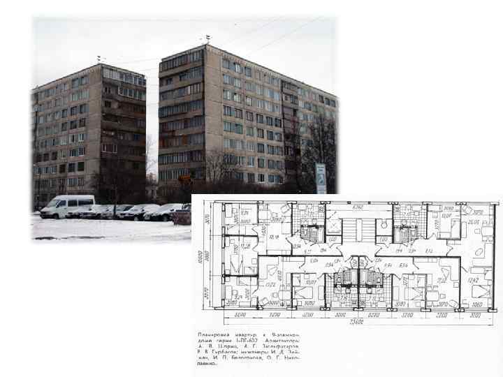 Брежневки: серия 1 -ЛГ 602 см подробный обзор модификаций http: //domavspb. narod. ru/index/0 -14 • • • Этажность: 9 Материал наружных стен: бетонные панели Высота жилых помещений: 250 см Квартиры: одно-, двух-, трех-, четырехкомнатные Производитель: Обуховский ДСК Годы строительства: 1966 -1973 (1 -602 У – до 1983 г) Основные районы расположения: Фрунзенский, Невский Первая девятиэтажная серия домов в Ленинграде, одна из самых ранних брежневок. Производство домостроительной серии 1 -ЛГ 602 началось на Обуховском ДСК (ДСК-2) в 1966 году и закончилось в начале 1970 -х годов. Серия включала в себя пять типов девятиэтажных домов разной протяженности. «Проекты предусматривают применение новых отделочных материалов – керамики, стеклянных плиток, полимеров. Расширена цветовая гамма панелей. Фасады стали более пластичными и выразительными. Многое изменилось и во внутренней отделке зданий. Улучшились (разумеется, по отношению к постройкам хрущевской поры) звукоизоляционные качества перегородок и перекрытий» , – писали в газетах о домостроительной серии, призванной стать самой массовой. Но реальная строительная практика в СССР эпохи развитого социализма серьезно отличалась от того, что рисовалось на ватмане. Одна из удач проектировщиков – светлые лестничные площадки с вытянутым в горизонтальной плоскости окном. Здесь появились лифты и мусоропроводы. Планировки домов не отличались разнообразием. Конструкция лестнично-лифтового узла позволяла разместить на этаже четыре квартиры и, в общей сложности, десять жилых комнат. Таким образом, на одной лестничной площадке дома серии 1 -Лг-602 могут размещаться одно-, двух- и трехкомнатные квартиры с общим числом комнат, кратным десяти ( «две двухкомнатные + две трехкомнатные» , «две четырехкомнатные + две однокомнатные» , «одно-, двух-, трех- и четырехкомнатная» ). На эти четыре квартиры приходятся также две лоджии (исключение составляют лишь торцевые секции). К числу планировочных недостатков серии можно отнести отсутствие подсобных помещений – есть квартиры без кладовок, а также неудобные кухни: при не такой уж и маленькой площади – больше 7 кв. м – они как бы прижаты к наружной стене монолитной стандартной сантехкабиной (их на стройплощадки привозили уже готовыми), а стена, разделяющая кухню и санитарные «удобства» , представляет собой короб, в котором проложены трубы и вентканалы. Это неудобство стало очевидным сразу, а потому архитектор Сваричевский предложил развернуть лестничные узлы в домах этой серии на 45 градусов. Такая компоновка позволяла расположить на этаже не четыре, а шесть квартир, увеличив при этом площади кухонь и санузлов. Предложение сулило немалый экономический эффект, однако дело ограничилось строительством экспериментального дома на пересечении улиц Будапештской и Турку (бывшая Бассейная ул. ) в 1970 году и премией Совета Министров в 1973. С середины 1970 -х годов строились улучшенные модификации серии 1 -602 У, отличающиеся от прототипа поперечно расположенными ваннами, позволяющими поставить стиральную машину, и увеличенными кухнями. Потребительские качества Места общего пользования (кухни, прихожие, санузлы) в квартирах типовых домов 1 -602 не поддаются перепланировкам. Узкая кухня здесь – не самое подходящее место для расположения стандартной стиральной машины, а для того, чтобы разместить стиральный авто