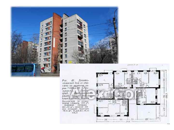 1 -528 КП-41, 42, 43 http: //domavspb. narod. ru/index/0 -15 • • • Этажность: 9 Материал наружных стен: силикатный или керамический кирпич Высота жилых помещений: 250 см Квартиры: одно-, двух-, трех-, четырехкомнатные Производитель: разные строительные организации Годы строительства: 1964 -1972 Основные районы расположения: Фрунзенский, Московский Многоподъездные девятиэтажные дома серии 1 -528 КП-41 – самый распространенный тип кирпичных домов второй половины шестидесятых годов. Их проектировали с учетом норм, определенных в 1963 году. Внешне такие дома напоминают самые удачные ранние брежневки – панельные постройки 606 -й серии: со стороны входа в парадную центральная часть секции выдается вперед, образуя выступ с лестнично-лифтовым узлом и мусоропроводом. Лестничная площадка в доме серии 1 -528 КП-41 – коридорного типа, и такая компоновка позволяет соседям сделать общий тамбур на две или три квартиры. Что касается планировочных решений, то они более разнообразны, нежели в панельных домах того же возраста (комнаты – от 10. 2 до 21. 6 кв. м, кухни - от 5. 7 до 8. 3 кв. м). В однокомнатных квартирах встречаются смежные санузлы, в остальных, как правило, – раздельные, хотя и небольшие. Проходные (общие) комнаты имеются обычно только в трехкомнатных квартирах. К числу недостатков можно отнести тесные Г-образные прихожие и пристрастие проектировщиков к тамбурам и крошечным кладовкам: однако разместить более просторные стенные шкафы без ущерба для жилой площади в таких квартирах практически невозможно. Среди девятиэтажных домов 528 -й серии значительный процент составляют дома ЖСК. В таких домах – не самые удачные планировки. Комнаты в них узкие, но следует отметить, что такие дома, благодаря лучшему качеству строительства, устаревают значительно меньше, нежели аналогичные панельные.