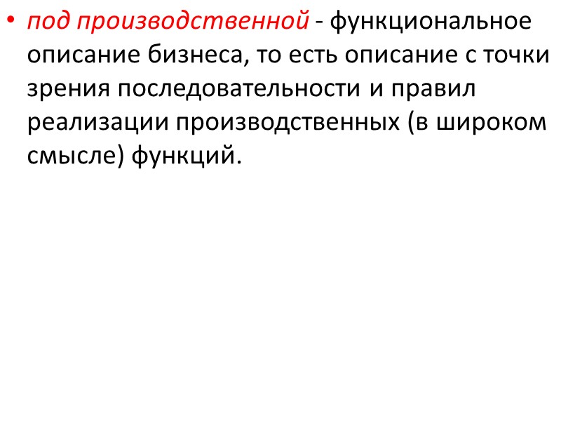 под производственной - функциональное описание бизнеса, то есть описание с точки зрения последовательности и правил реализации производственных (в широком смысле) функций.