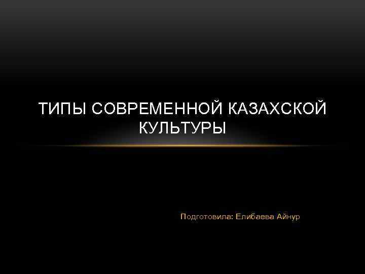 ТИПЫ СОВРЕМЕННОЙ КАЗАХСКОЙ КУЛЬТУРЫ Подготовила: Елибаева Айнур