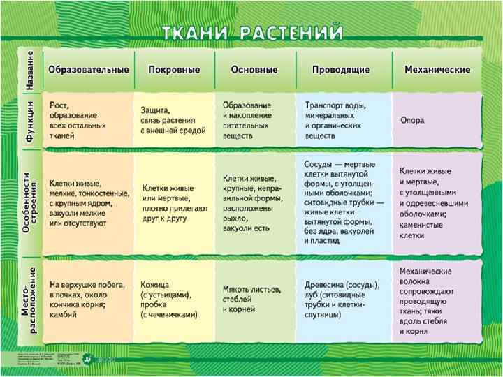 Характеристика тканей • Основные типы: – – – Образовательные Покровные Проводящие Механические Основные Выделительные • Отдельные клетки или структуры, отличающиеся от окружающей их ткани по строению и функции, называются идиобластами. – Пример: Эфирные вместилища в листьях или склереиды в секреторной ткани;