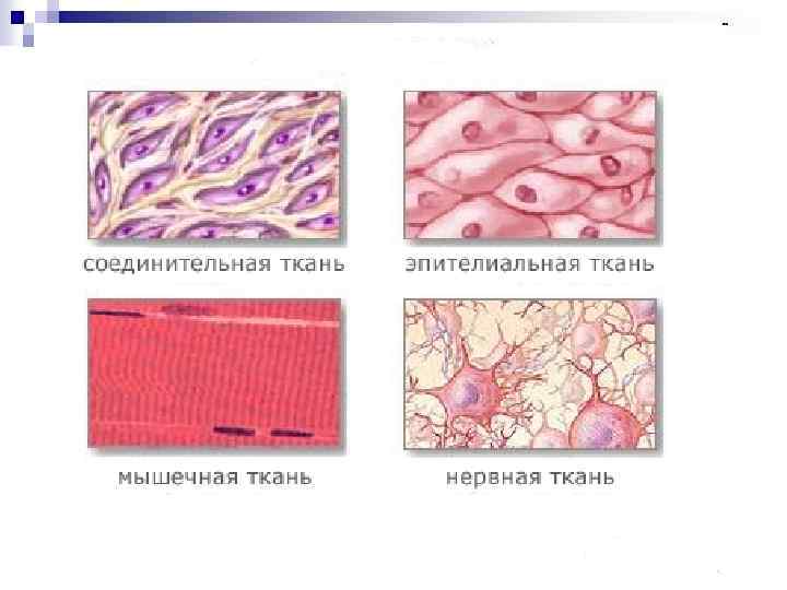 Виды тканей. 1) Эпителиальная ткань; 2) Соединительная ткань; 3) Мышечная ткань; 4) Нервная ткань.