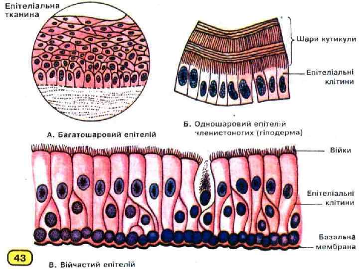 Одношаровий епітелій (плоский, кубічний, циліндричний )