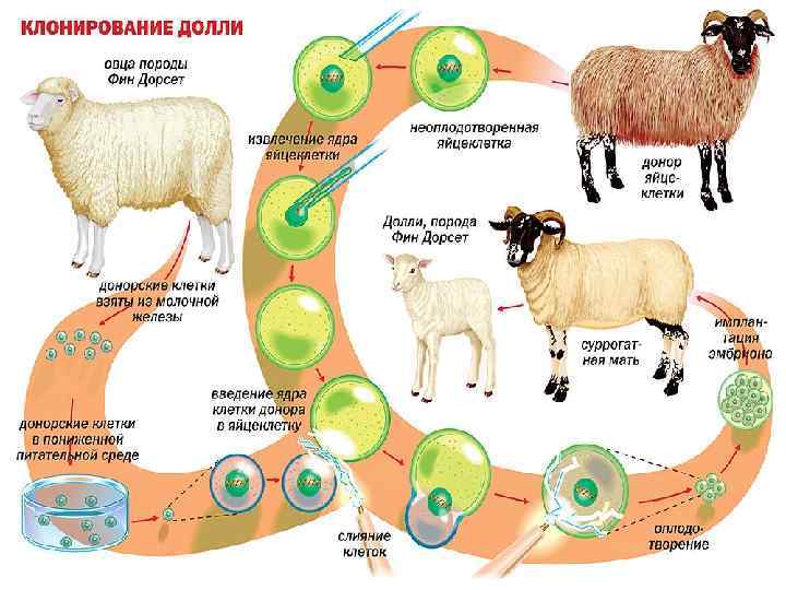Клоном (від грец. клон – гілка, нащадок) називають сукупність генетично ідентичних клітин або особин, отриманих від спільного предка нестатевим шляхом. Клітинне клонування — клонування, при якому відбувається виведення популяції клітин із однієї клітини. Першим клонованим організмом була вівця Доллі. Вівця Доллі