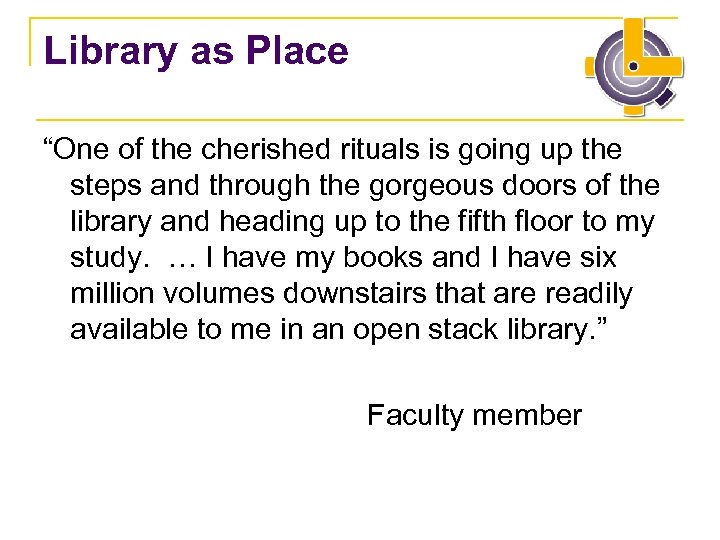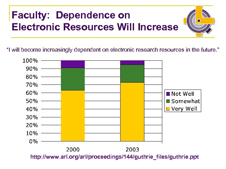 Faculty: Dependence on Electronic Resources Will Increase “I will become increasingly dependent on electronic research resources in the future. ” http: //www. arl. org/arl/proceedings/144/guthrie_files/guthrie. ppt
