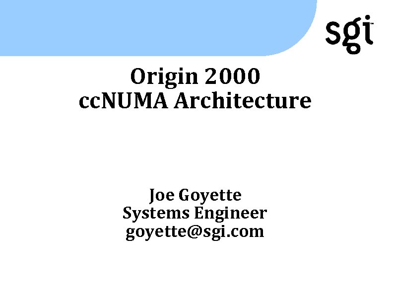 TM Origin 2000 cc. NUMA Architecture Joe Goyette Systems Engineer goyette@sgi. com