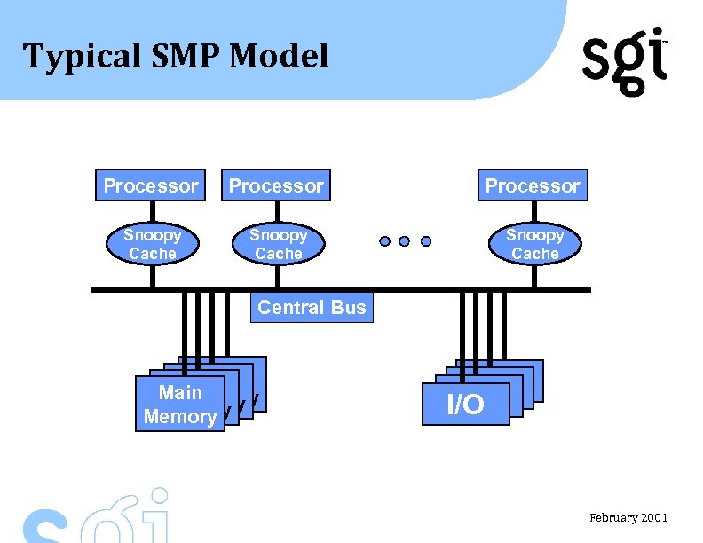 Typical SMP Model TM Processor Snoopy Cache Central Bus Main Memory I/O I/O February 2001