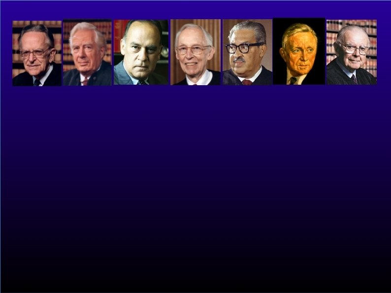 These men, from left to right, are: Harry Blackmun Warren Burger Potter Stewart Lewis Powell, Jr. Thurgood Marshall William O. Douglas William Brennan