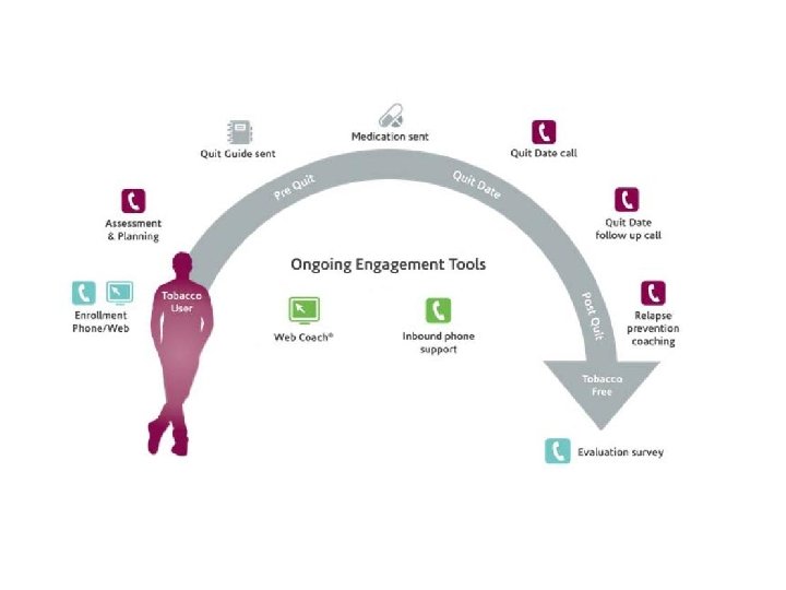Online Programs for Specific Populations § Teen. Quit and The Truth® -- teen tobacco users www. teenquit. com and www. truth. org § My Last Dip – smokeless tobacco users www. mylastdip. com § Ucanquit 2 – military members, families and veterans www. ucanquit 2. org