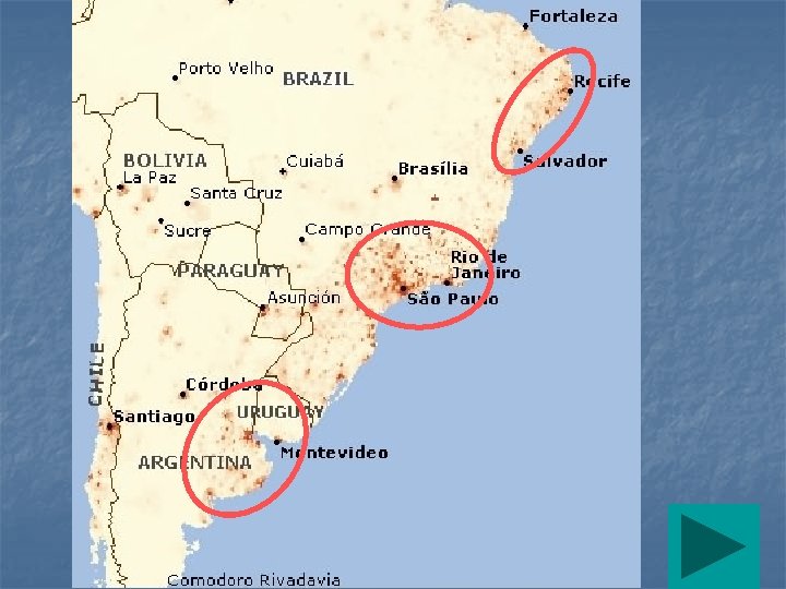 • • • Population (2007 estimates) Latin America & Caribbean ~ 569 m (8. 7% of global total) USA ~ 302 m (4. 6 % of global total) World ~ 6, 525 m Caribbean ~ 40 m Central America (with Mexico) ~ 148 m Mexico ~ 106. 5 m South America (with Brazil ~ 381 m) Brazil ~ 189 m Mexico + Brazil ~ 295. 5 m (> ½ of LA; ~ © T. M. Whitmore USA)