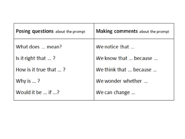 Ask a question or make a statement about this prompt. You can use the sentence starters to help you.