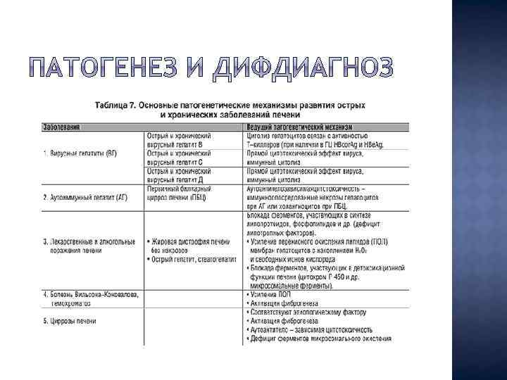 Изучавшиеся параметры Алкогольный гепатит Токсический гепатит Анамнез Длительное злоупотребление алкого лем; часто развивается после запоя Желтуха, иногда зуд, яркие телеан гиэктазии, гепатомегалия, поражение других органов мишеней (сердце, поджелудочная железа, центральная и периферическая нервная система) Макроцитоз (иногда макроцитарная анемия), лейкоцитоз, повышение СОЭ Ал. АТ N/+ , Ас. АТ ++, у ГТП ++++, ЩФ N/ ++, билирубин ++, альбумин / , ПИ / Возможно эпизодическое упот ребление дешевых спиртных напитков Желтуха, зуд, гепатомегалия Объективные данные Клинический анализ крови Биохимический анализ крови Гуморальные иммунологи ческие. Иммуноглобулин А t+/++ показатели Результаты УЗИ Гепатомегалия, часто спленомега лия, расширение сосудов портальной системы Гистологические данные Стеатоз +++, полиморфноклеточная инфильтрация +++, некрозы +/+++, холестаз /+, тельца Мэллори, фиброз +/+++ (преимущественно перивенулярный) Особенности течения на фоне Отсутствие уменьшения уровня терапии били рубина через 7 дней терапии ГКС плохой прогностический признак Летальность 20 50% Умеренно выраженная нормо или макроцитарная анемия, повышение СОЭ Ал. АТ + /++ , Ас. АТ + /++, у ГТП ++/+++ , ЩФ + /++, билирубин +++, альбумин N/ , ПИ N/ Иммуноглобулин А N/+ Гепатомегалия Стеатоз +/++, полиморфнокле точная инфильтрация +, некрозы +/ , холестаз +++, фиброз +/ Длительный упорный холестаз 5 7%