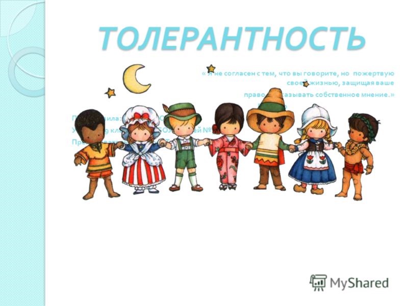 Основой толерантности как качества личности является признание права на отличие. Она проявляется в принятии другого человека таким, каков он есть, уважении другой точки зрения, сдержанности к тому, что не разделяешь, понимании и принятии традиций, ценностей и культуры представителей другой национальности и веры.