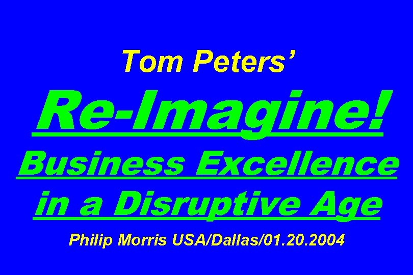 Tom Peters’ Re-Imagine! Business Excellence in a Disruptive Age Philip Morris USA/Dallas/01. 2004