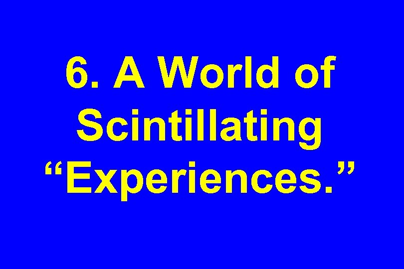 6. A World of Scintillating “Experiences. ”