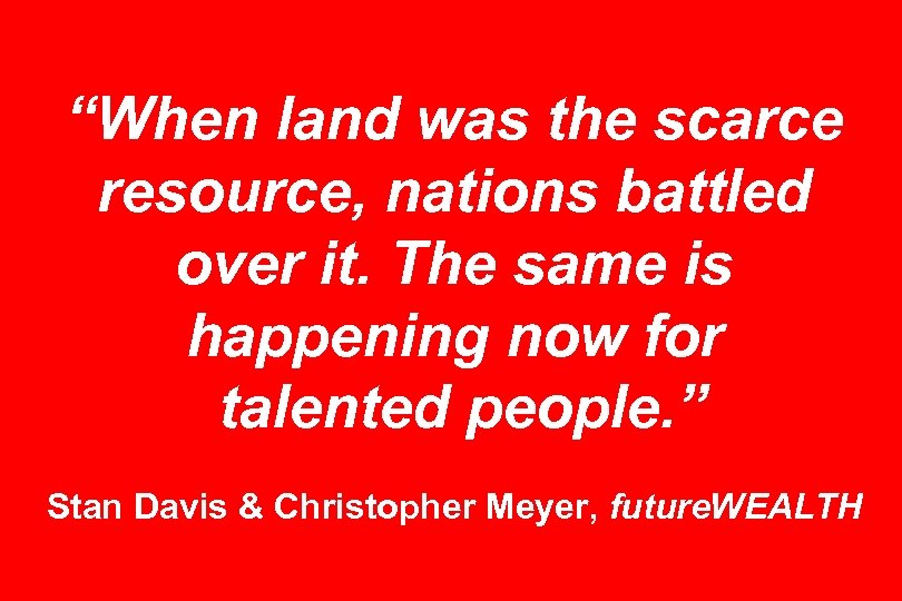 “When land was the scarce resource, nations battled over it. The same is happening now for talented people. ” Stan Davis & Christopher Meyer, future. WEALTH