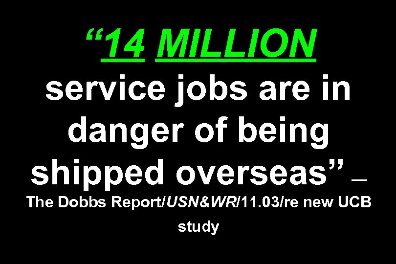 “ 14 MILLION service jobs are in danger of being shipped overseas” — The Dobbs Report/USN&WR/11. 03/re new UCB study