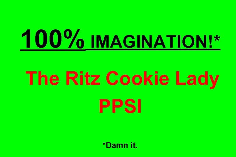 100% IMAGINATION!* The Ritz Cookie Lady PPSI *Damn it.