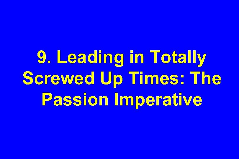 9. Leading in Totally Screwed Up Times: The Passion Imperative