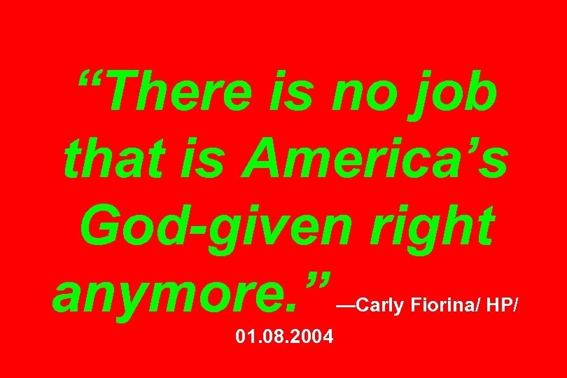 “There is no job that is America’s God-given right anymore. ” —Carly Fiorina/ HP/ 01. 08. 2004
