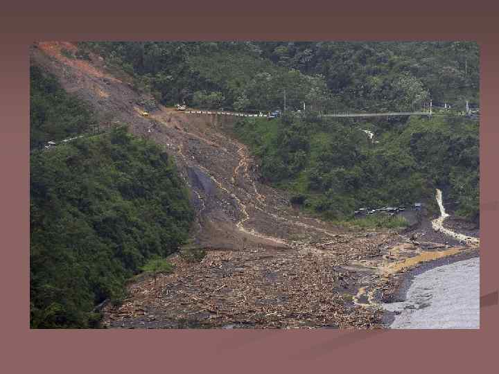 Оползень – это сползание горных пород под силой тяжести. Он сносит на своем пути камни, деревья, части домов. Причиной оползней может быть землетрясение, извержение вулкана или любая другая нестабильность земли. Особыми случаями оползня являются обвалы, вызываемые проливными дождями