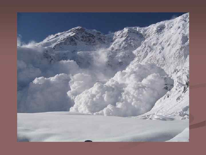 Лавина – это геофизическое явление, масса снега или камня, падающая или соскальзывающая с горы. Это одна из самых больших опасностей зимой. Лавина, идущая с горы, может увлекать за собой снег с соседних вершин и таким образом расти в размере. Снег смешивается с воздухом, формируя лавину-облако.