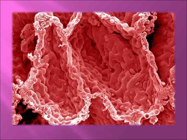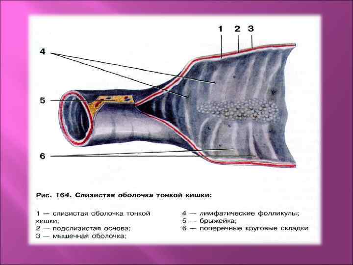 Слизистая оболочка имеет: 1. Матовый бархатистый вид, т. к. ее покрывает много кишечных ворсинок – это отростки слизистой (макроворсинки) Функция: всасывание питательных веществ. 2. Микроворсинки – осуществляют пристеночное пищеварение 3. Круговые складки Функции: üудерживание пищи в различных отделах тонкого кишечника üувеличивание площади