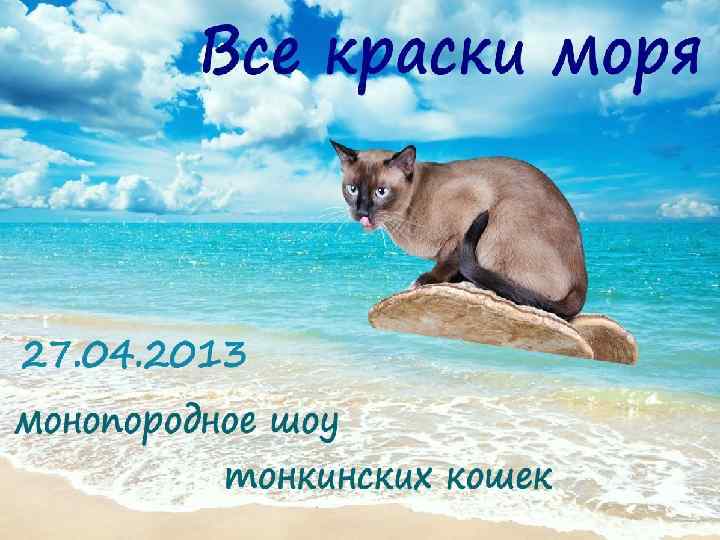 История • • • 1950 –е гг. в Нью-Йорке Милан Грир начала разведение «золотых сиамских кошек» ; 1960 гг. – Маргарет Конрой в Канаде и Джейн Барлетта в Нью-Джерси начали разведение тонкинских кошек. Порода получила название Tonkanese; 1965 г. Порода принята к регистрации в CCA, и в 1971 г. Получила чемпионский статус, создан Tonkinese Breed Club (TBC) 1975 порода признана в США ICF и CFF; C 1977 г. до 1984 заводчики добивались признания породы в CFA; • • • 1979 г. Джоан Бернштейн создала Tonkinese Breed Association (TBA); 1984 г. Тонкинезы получили чемпионский статус в CFA; 1991 г. Порода признана в GCCF, основан Tonkinese Breed Club в Англии, в 2001 г. Получен чемпионский статус в GCCF; 1994 г. в Одессе началась экспериментальная работа по разведению тонкинских кошек (Ирина Ряполова); 2006 г. Началось разведение тонкинских кошек в С-Петербурге.