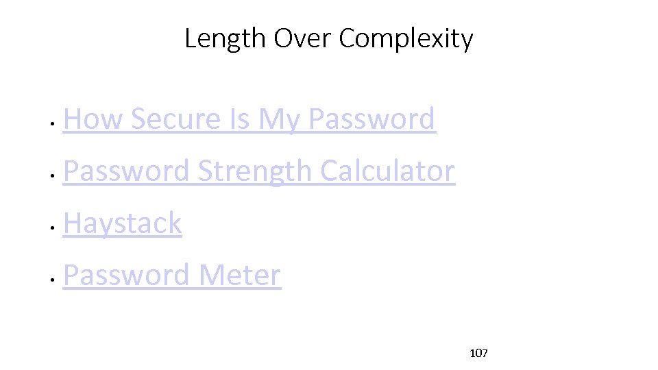 Length Over Complexity • How Secure Is My Password • Password Strength Calculator • Haystack • Password Meter 107