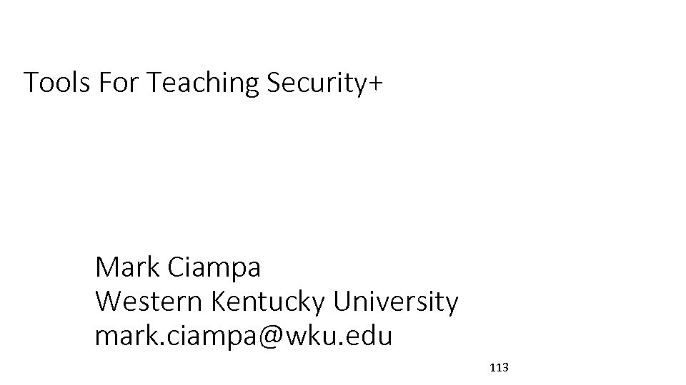 Tools For Teaching Security+ Mark Ciampa Western Kentucky University mark. ciampa@wku. edu 113