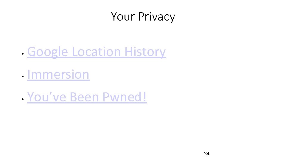 Your Privacy • Google Location History • Immersion • You’ve Been Pwned! 34