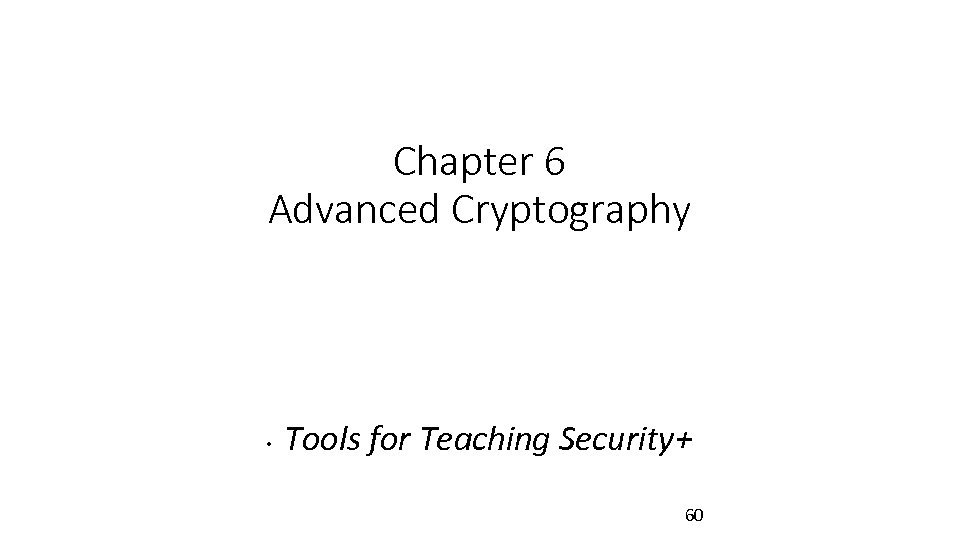 Chapter 6 Advanced Cryptography • Tools for Teaching Security+ 60