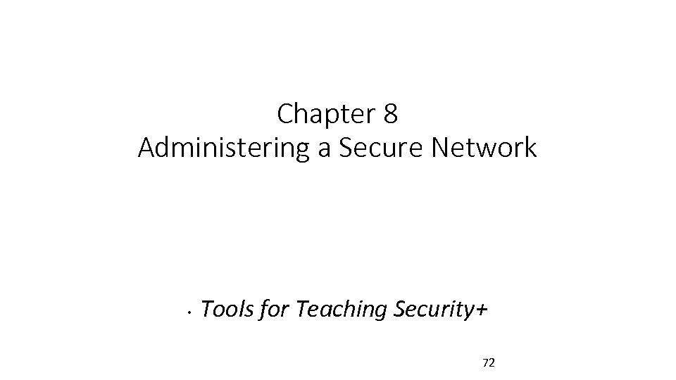 Chapter 8 Administering a Secure Network • Tools for Teaching Security+ 72