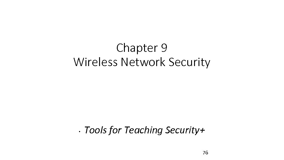 Chapter 9 Wireless Network Security • Tools for Teaching Security+ 76
