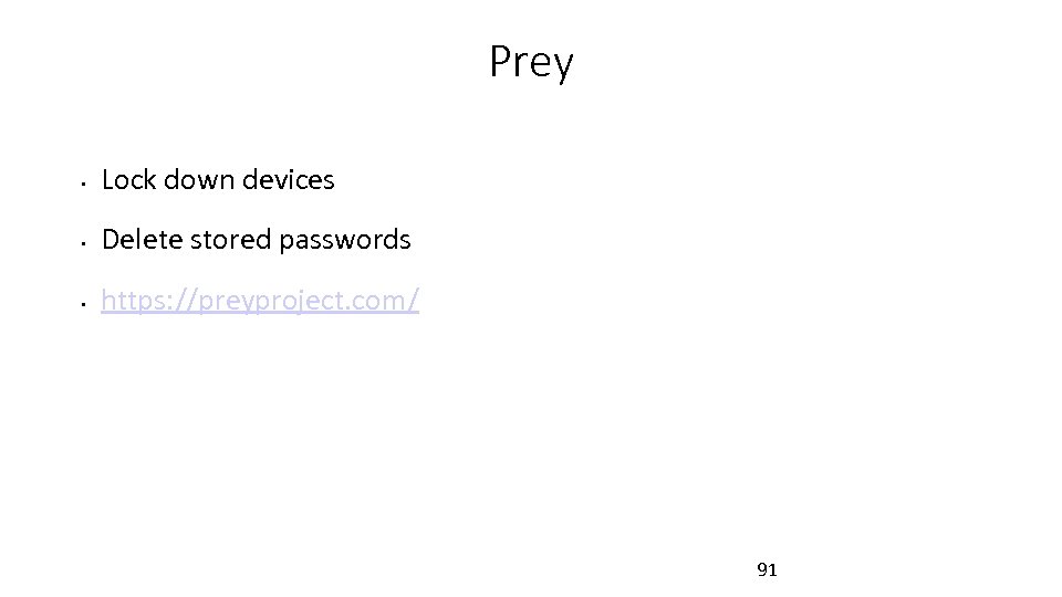 Prey • Lock down devices • Delete stored passwords • https: //preyproject. com/ 91