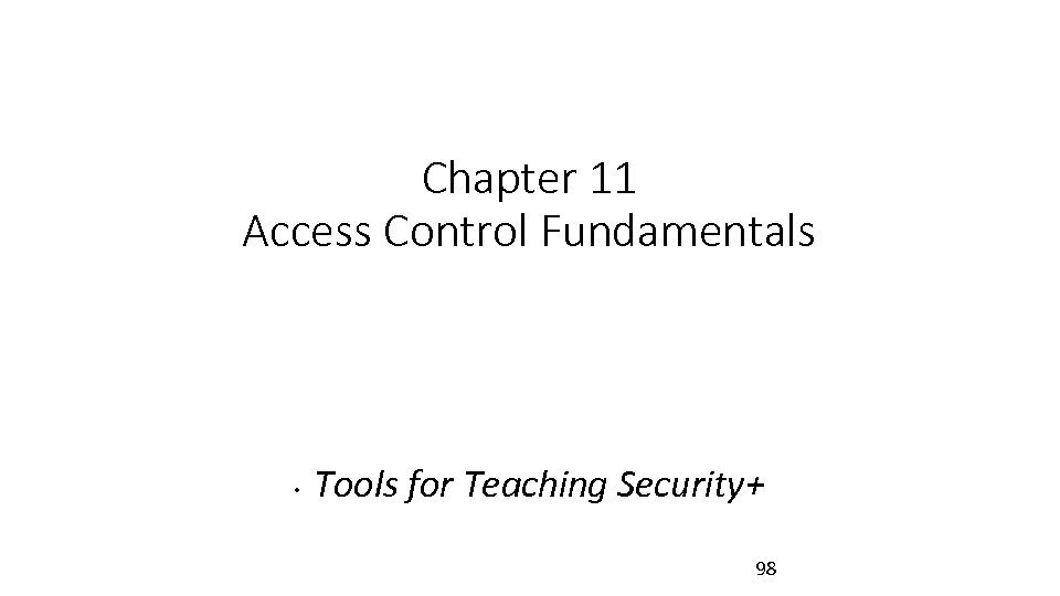 Chapter 11 Access Control Fundamentals • Tools for Teaching Security+ 98
