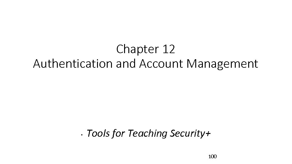 Chapter 12 Authentication and Account Management • Tools for Teaching Security+ 100