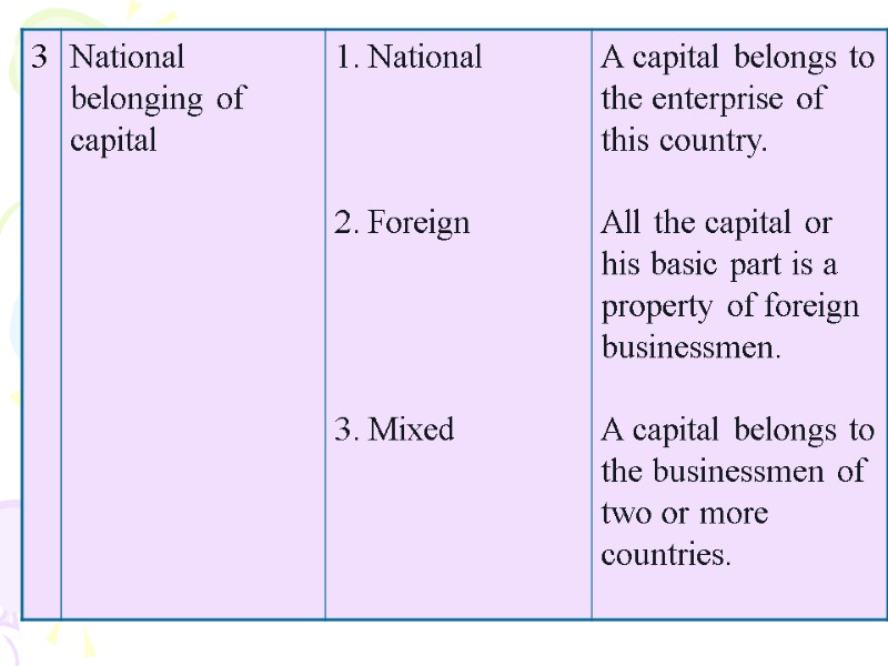 Enterprise forming sources : Money payments and material of founders; profit from the basic and other types of activity; profits from shares and other investment activity;
