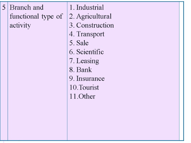 4. Branch pattern of production Branch of industry – it high-quality homogeneous aggregate of enterprises, associations and other economic units of different patterns of ownership what execute identical functions in the system of public division of labor