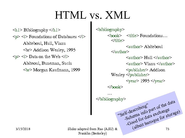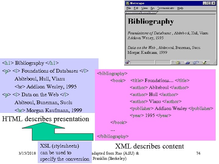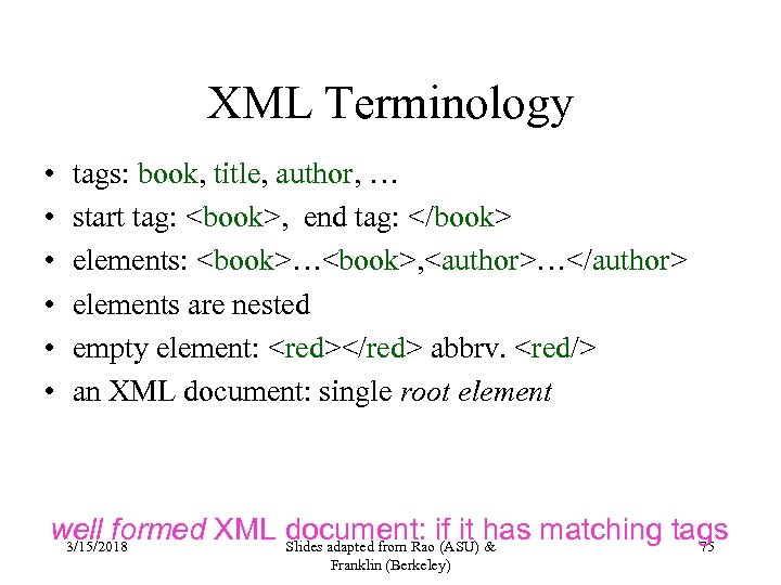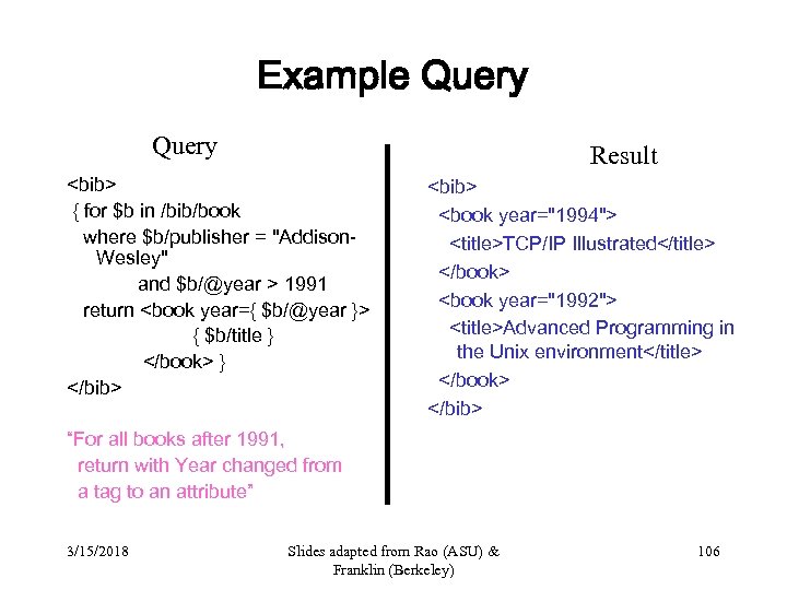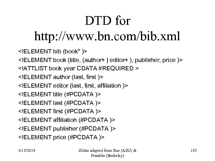 DTD for http: //www. bn. com/bib. xml 3/15/2018 Slides adapted from Rao (ASU) & Franklin (Berkeley) 105