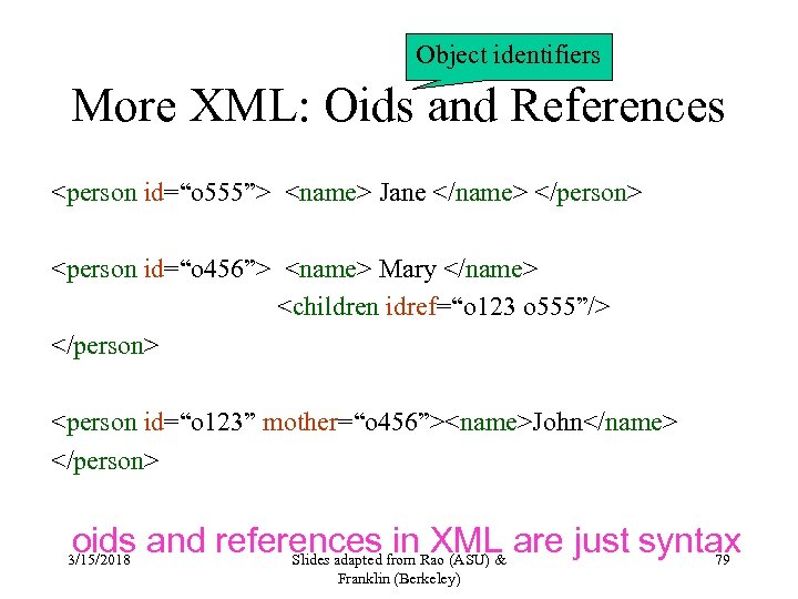Object identifiers More XML: Oids and References