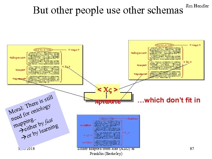 But other people use other schemas Jim Hendler < CV > ill is st here ogy : T oral r ontol M fo eed ng. . n t ppi r by fia g ma ithe in e earn by l r o 3/15/2018 private Slides adapted from Rao (ASU) & Franklin (Berkeley) …which don’t fit in 87